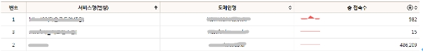 리스트 중에서 상세 트래픽 정보를 확인하고 싶은 서비스를 클릭하면 상세 통계 화면으로 이동합니다.