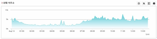 일 단위 히트수는 총 히트수를 5분 단위로 보여줍니다. 주, 월, 그리고 특정 기간 단위 히트수는 1일 최대치 값을 기준으로 제공됩니다.