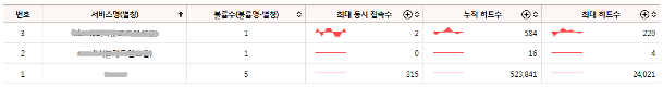 리스트 중에서 상세 트래픽 정보를 확인하고 싶은 서비스를 클릭하면 상세 통계 화면으로 이동합니다.