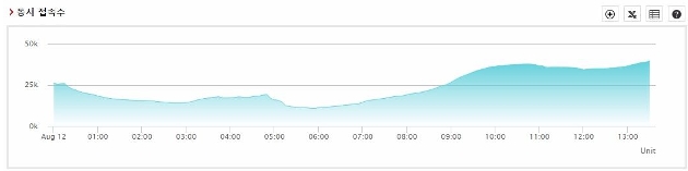 일 단위 동시 접속수는 동시에 접속한 세션의 총합을 5분 단위로 보여줍니다. 주, 월, 특정 기간 단위 동시 접속수는 1일 최고치 값을 기준으로 제공됩니다.